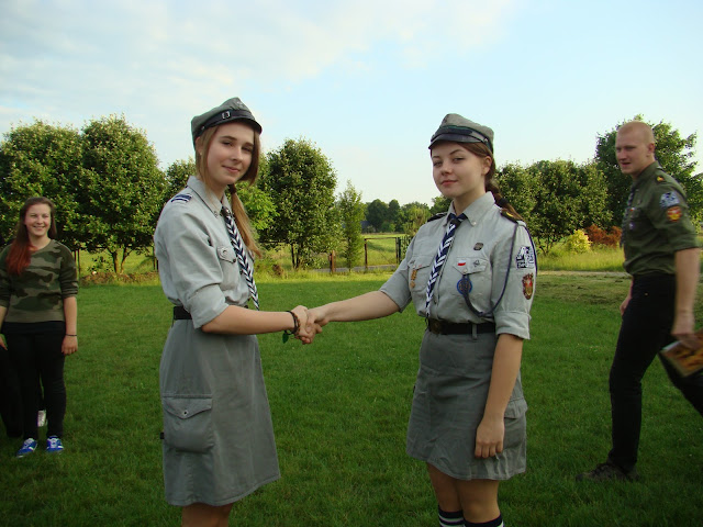 Wieczorem znów wybraliśmy się na szaniec. Wracając, jedna z naszych druhen została porwana! Dwóch zamaskowanych przybyszów porwali ją do lasu! By potem przyprowadzić ją do ogniska, przy którym złożyła ślubowanie! Emilko - GRATULUJEMY!
